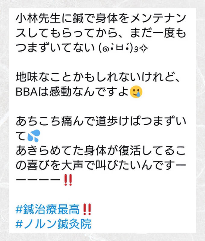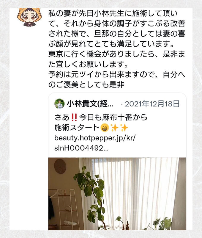 「ノルン鍼灸院 in salon de Hori」の小林 貴文(こばやし たかふみ)です。